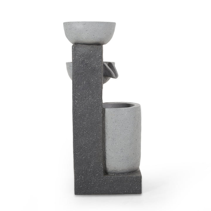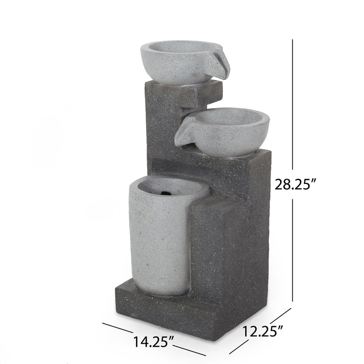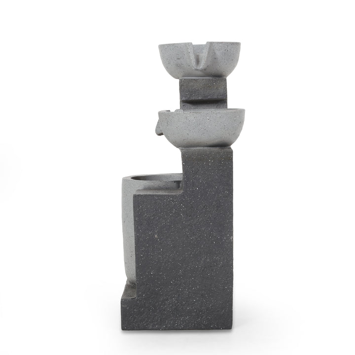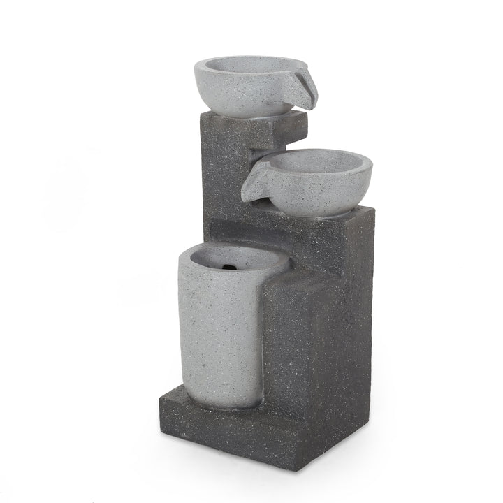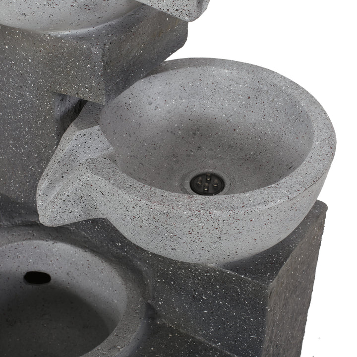3-Tier Outdoor Fountain w/ LED Lights, Multi Gray, No Assembly Required, Polyresin