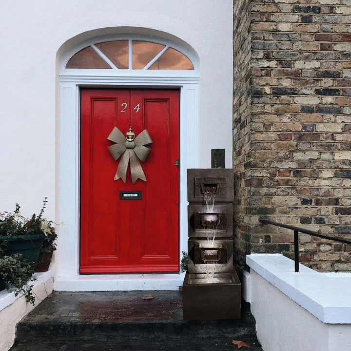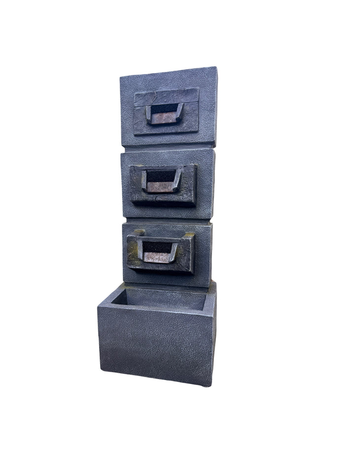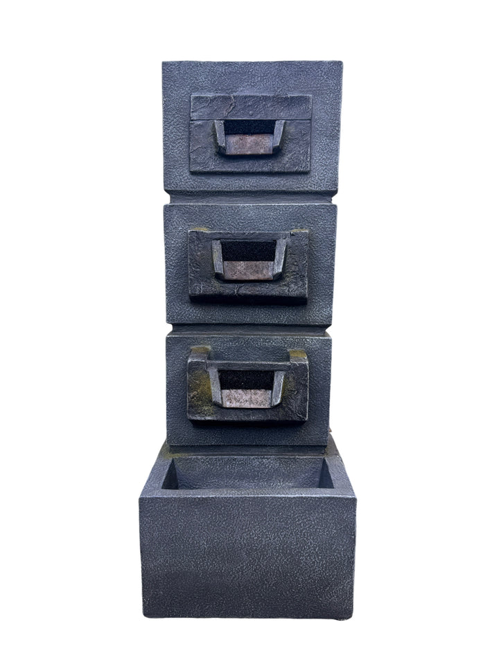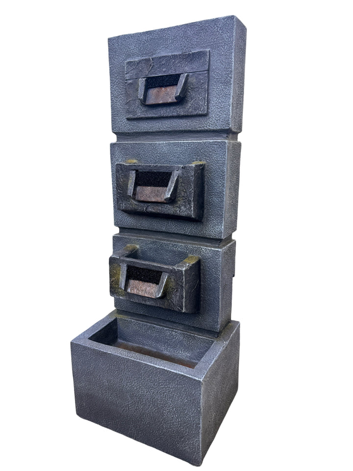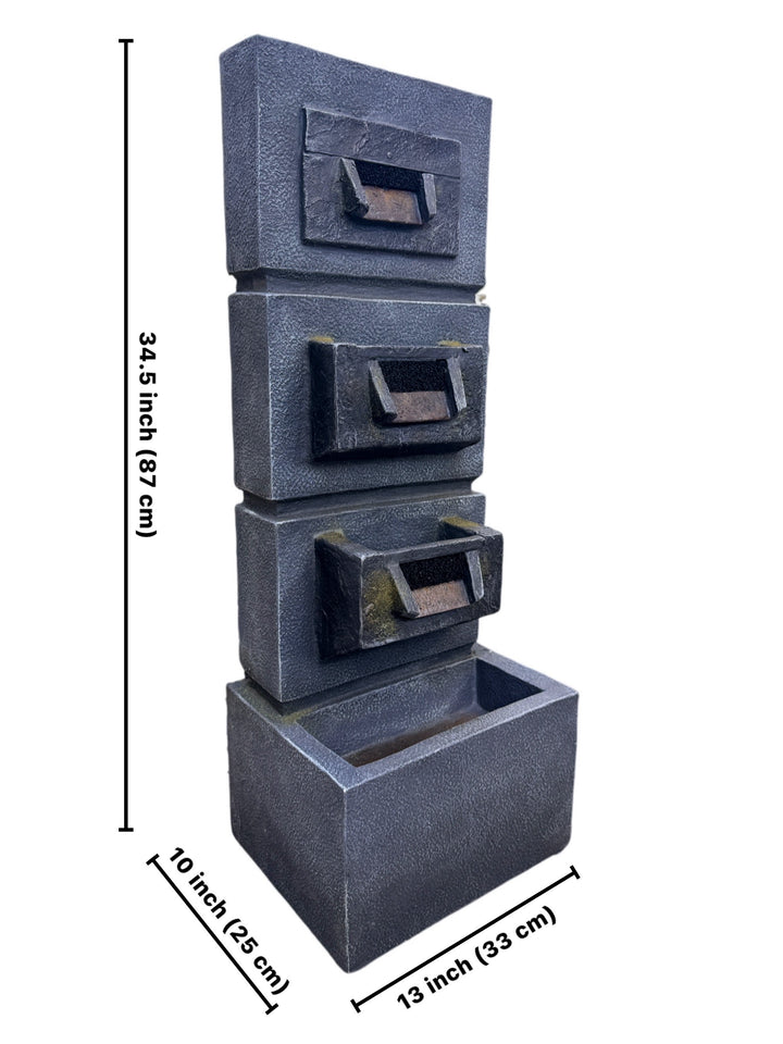 This unique outdoor garden water fountain is a striking addition to any outdoor space. Its distinctive geometric design allows water to flow gracefully over long surfaces, creating a majestic display and soothing water sounds that elevate the ambiance of your garden, porch, or deck.